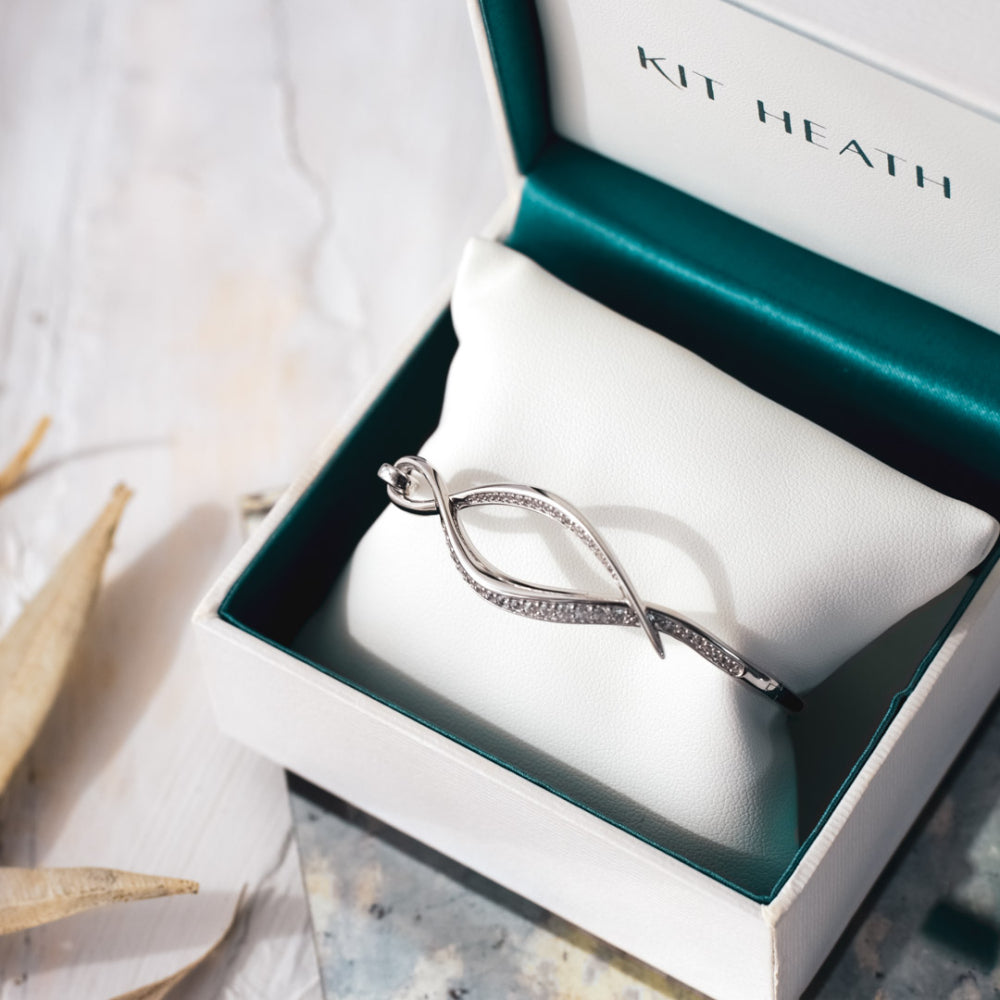 Classic yet edgy, the sleek twists of this hinged bangle is luxuriously set with sparkling cubic zirconia.