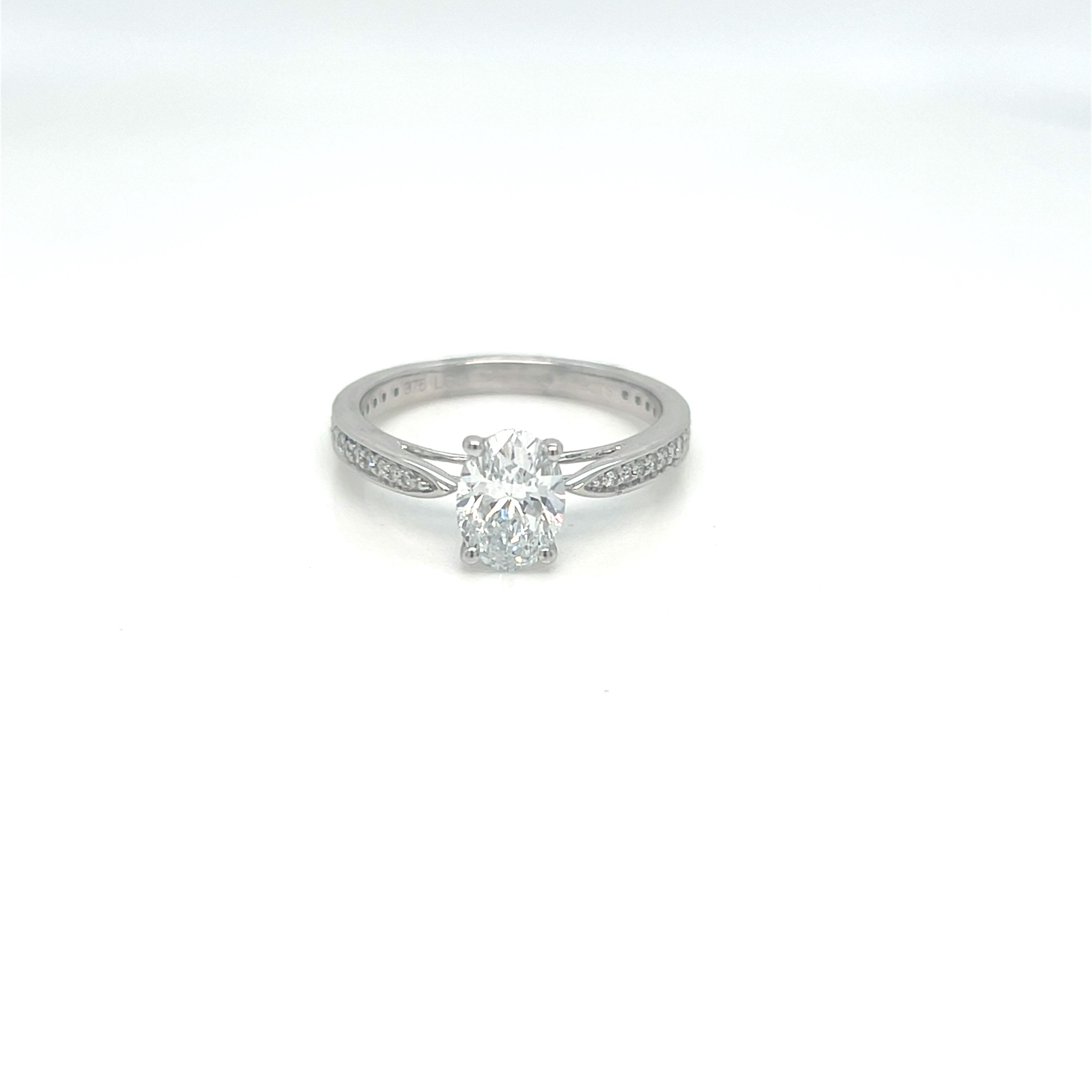 Gemstone: 1.00ct Oval lab grown diamond with 0.19ct lab grown accent diamonds in the shoulder